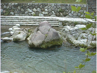 温泉街を経由してみました。温泉街が見える前に、ひき岩という川に