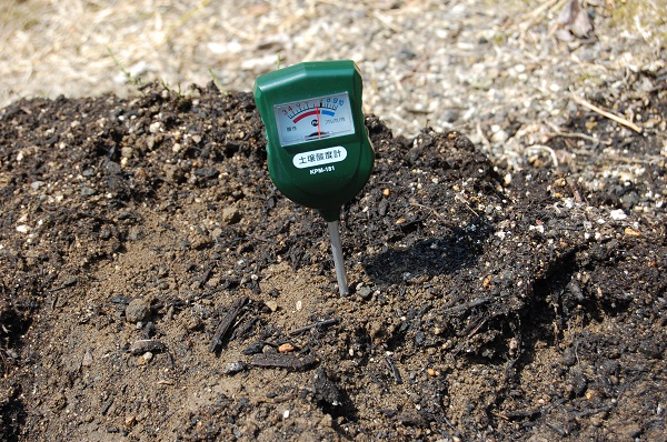 今までは、苦土石灰をまいて耕してたけど、これからは酸度計で計って