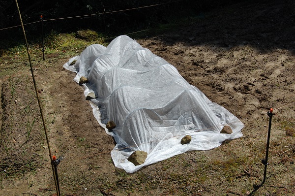 まだちょっと霜が心配なので不織布をかけてやりました。2時間ほどの作業