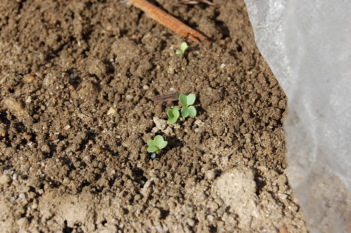 ホウレンソウの芽が出始めた。