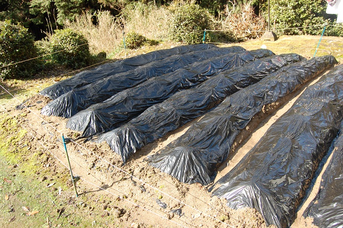 みた。穴あきの農ポリを買ったので作業は楽。来年の5月ごろ収穫予定。