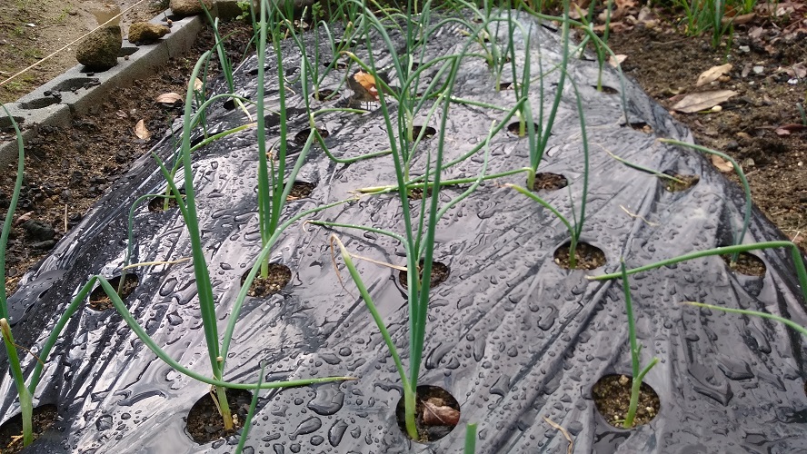 それと玉ねぎの苗を150ほど買って植え付けた。今回はマルチにして